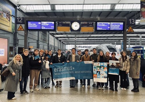 Vom 17. bis 21. November 2025 nahmen 15 Schüler:innen der 7. und 8. Klassen unserer Schule an einem Erasmus+ Aufenthalt an der Europäischen Schule München teil. In interaktiven Workshops und partizipativen Projektgruppen setzen sich die Jugendlichen gemeinsam mit internationalen Partnerschülerinnen mit aktuellen gesellschaftlichen Themen auseinander. Dabei standen unter anderem Demokratieverständnis, Klimawandel und Nachhaltigkeit, der Einsatz von Künstlicher Intelligenz, Menschenrechte sowie Pressefreiheit im Mittelpunkt. Ziel der Woche war es, den Blick der Schüler*innen über den eigenen Schulalltag hinaus zu erweitern und sie dazu zu befähigen, globale Herausforderungen kritisch zu reflektieren und aktiv mitzugestalten.