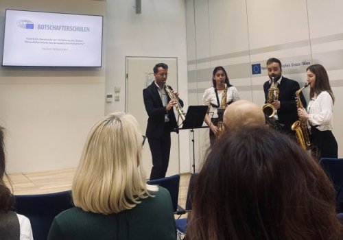 Am 28. November 2025 wurde unsere Schule im Haus der Europäischen Union in Wien feierlich als Botschafterschule des Europäischen Parlaments ausgezeichnet – eine Würdigung unseres vielfältigen Engagements für Europa im vergangenen Schuljahr.