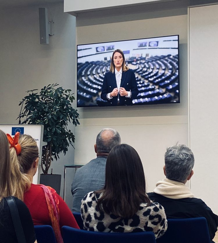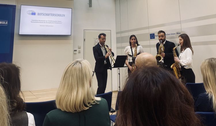 Bei der Verleihung richteten Mag. Andreas Schieder vom Europäischen Parlament – der die Bedeutung des Programms und die Rolle junger Menschen für die Zukunft Europas hervorhob – sowie ALin Dr.in Mag.a Andrea Schmölzer vom Bildungsministerium wertschätzende Worte an uns. Eine besondere Ehre war zudem die Video-Botschaft von EU-Parlamentspräsidentin Roberta Metsola, die den Einsatz junger Menschen für Demokratie und europäische Werte hervorhob.