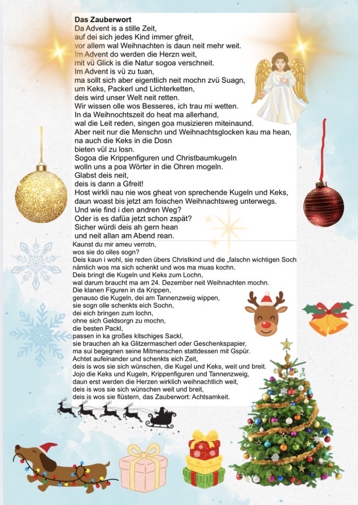 Dieses Weihnachtsgedicht (hier klicken) ist in der letzten Deutschstunde mit der 2B entstanden, die Gestaltung ist von Hannah Bakker.
