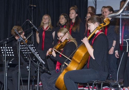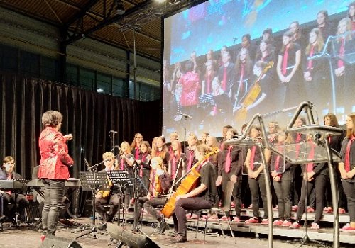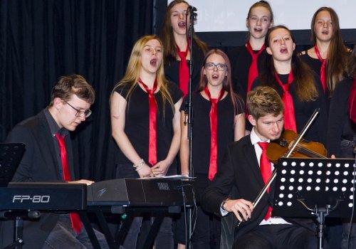 Das Vocalensemble des BG/BRG Knittelfeld mit Band und Streichorchester begeisterte in Zeltweg.