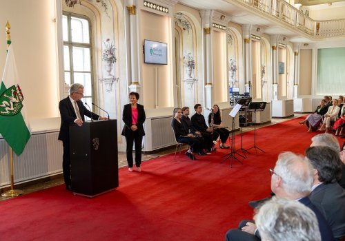 LH Mag. Christopher Drexler: „Mit einem Ehrenzeichen wollen wir die Persönlichkeit, die Tatkraft und den besonderen Einsatz derjenigen, die sich um unser Land verdient gemacht haben, würdigen und dafür Dank sagen. Danke, dass sie unser Land nicht nur durch ihre beruflichen und gemeinnützigen Leistungen mitgestaltet haben, sondern vor allem auch dadurch, dass sie ihren Idealen mit Energie und Leidenschaft gefolgt sind.“