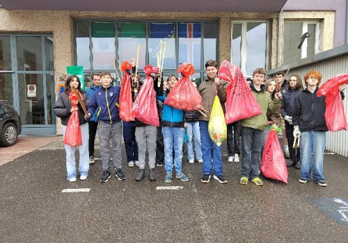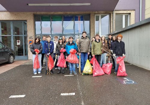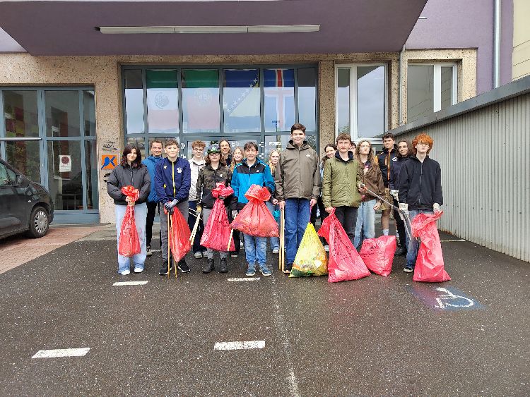 Unter der Begleitung von Prof. Mag. Dr. Christian Hatzenbichler und Prof. Mag. Martin Passiny konnte die 6B mit hölzernen Müllzangen bewaffnet einige pinke Müllsäcke befüllen. In Kleingruppen war die Klasse in der Umgebung des BG/BRG Knittelfeld, am Hauptplatz, im Park und entlang beliebter Spazierstrecken unterwegs, um diese von Abfall zu befreien.