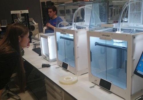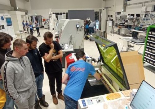 Hierbei handelt es sich um ein Labor, welches der Öffentlichkeit frei zugänglich ist und insbesondere auf das Themengebiet Smart Production spezialisiert wurde. Als wir dort ankamen, wurden wir von den Studierenden sehr herzlich mit Getränke und Snacks empfangen. Nachdem wir in einem Mini-Hörsaal die Studienrichtungen der FH sowie das Labor vorgestellt bekamen, teilten wir uns in 2 Gruppen auf und wurden von den Studierenden durch das Labor geführt. Wir konnten 3D-Drucker, Laser Cutter, Vinyl Cutter, eine CNC-Fräsmaschine und etliche weitere Hightech Maschinen besichtigen, anschließend durften wir sie sogar selbst verwenden. Viele von uns (einschließlich Prof. Müller und Menner) erstellten Motive, die wir anschließend mit dem Laser Cutter auf die unterschiedlichsten Materialien übertrugen, wir programmierten Bewegungsabläufe von Roboter-Armen und manche erstellten Objekte in den 3D-Druckern. Nach rund 2,5 Stunden verabschiedeten wir uns, bedankten uns für diesen eindrucksvollen Nachmittag, eilten zum Bahnhof und kamen am Abend wieder den Knittelfelder Bahnhof an.